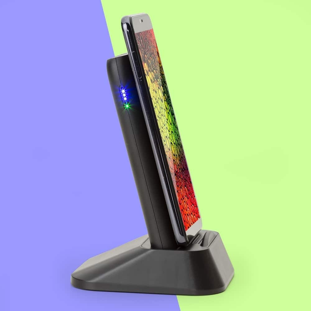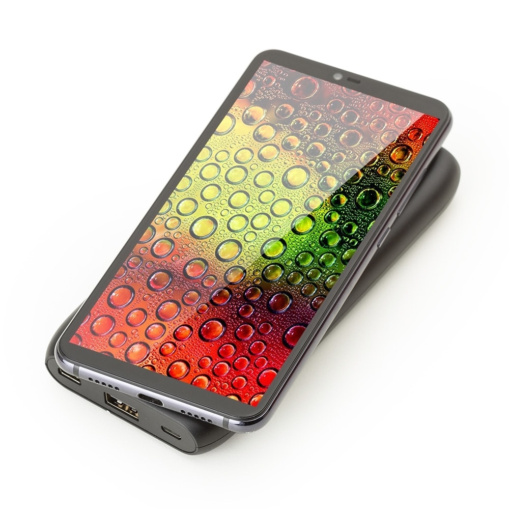Bateria “Wireless” de 10.000mAh com 2 entradas (Micro e Tipo-C) e 2 saídas (USB e Tipo-C). Acompanha estação de mesa para recarga da Bateria que pode carregar ao mesmo tempo o Celular. Material: ABS Entradas (2): DC 5V-2A e 3A Saídas (2): DC 5V-3A e 2,4A Potência do carregador “Wireless”: 10W