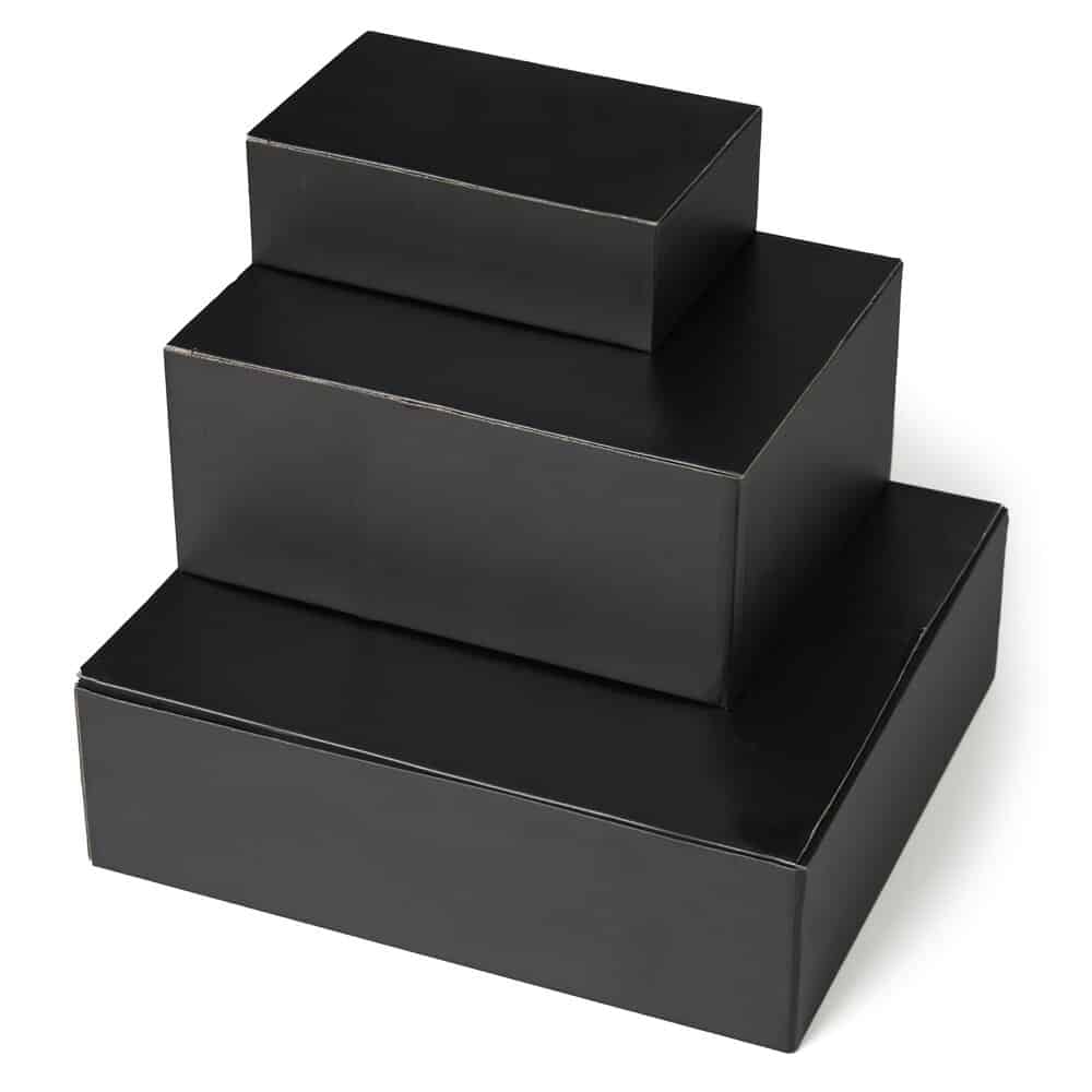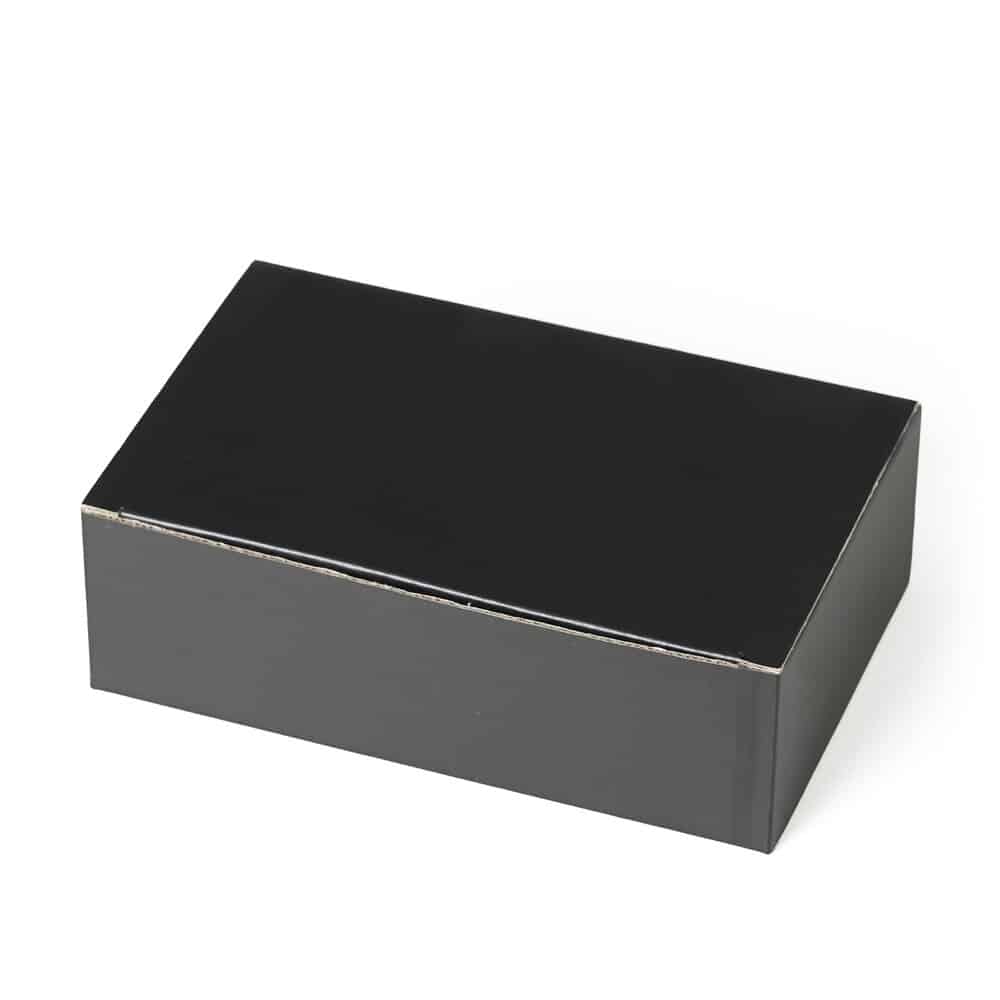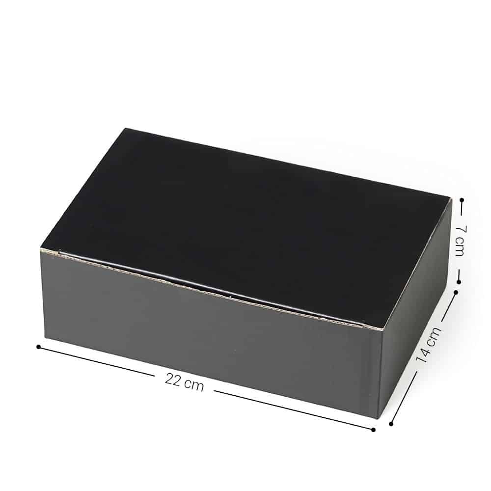 Caixa para Presente em papelão preto fosco com fundo automático Caixa para Presente em papelão preto fosco com fundo automático. Superfície da caixa: papel 300g, branco por dentro e preto por fora, micro ondulado de 220g Medidas: 22 x 14 x 7