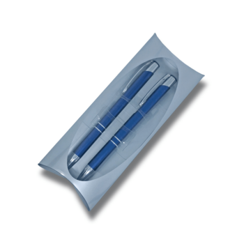 Caneta com corpo em bambu e detalhes plásticos. Acompanha estojo de papel.