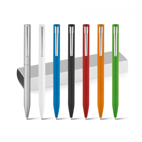 Esferográfica. Alumínio. Mecanismo twist. 2km de escrita. Fornecido em caixa presente.