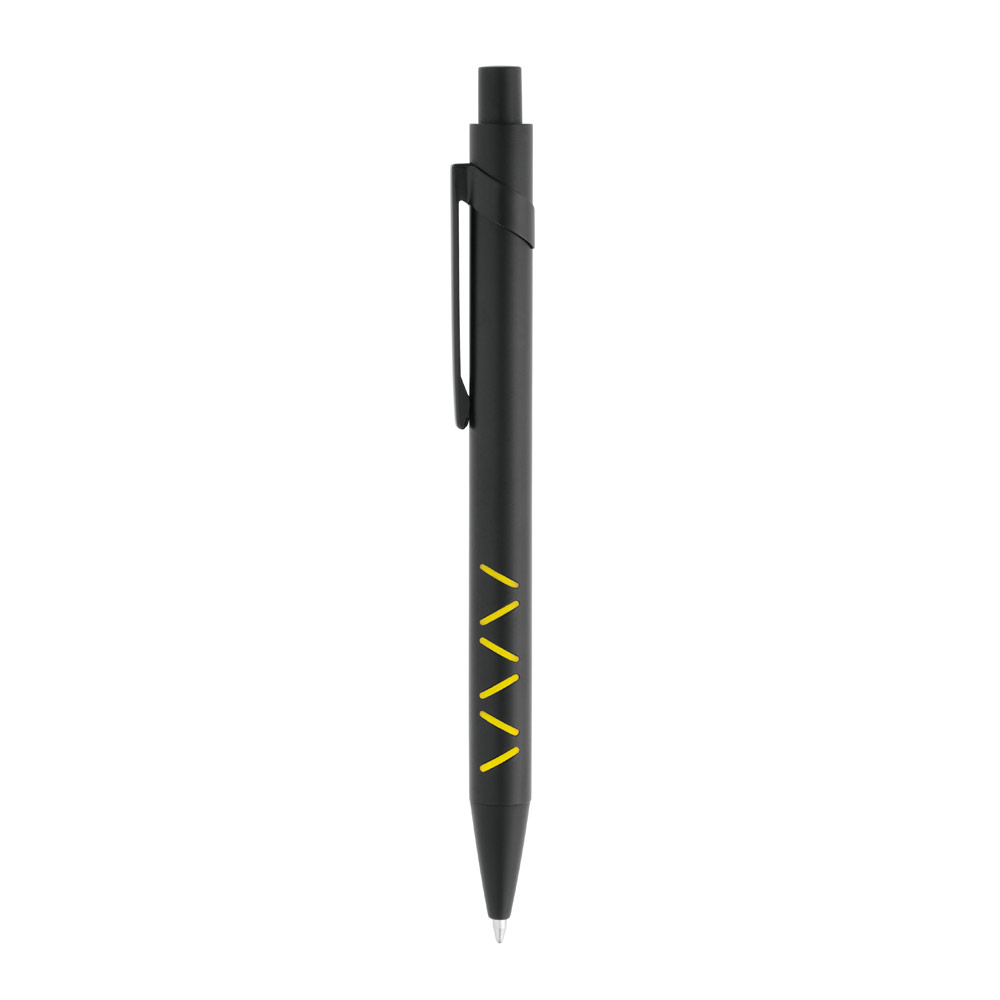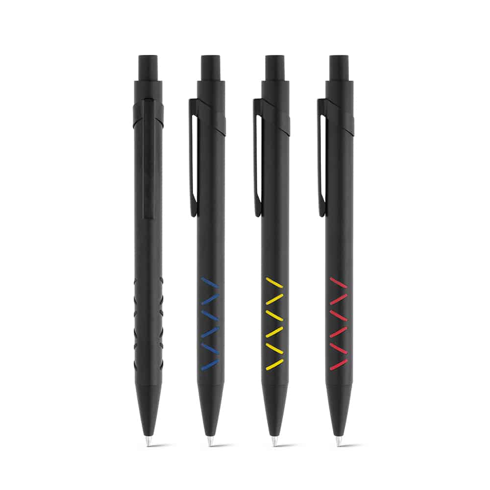Esferográfica. Alumínio. Com grip. 2km de escrita.