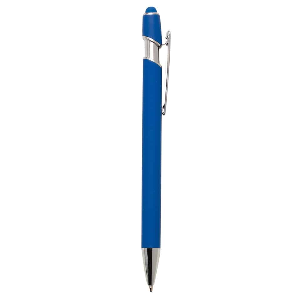 Caneta metal com ponteira touch. Corpo com pintura colorida e acabamento emborrachado, acionador com borracha touch e clip metálico com detalhe brilhante. Aciona por clique.