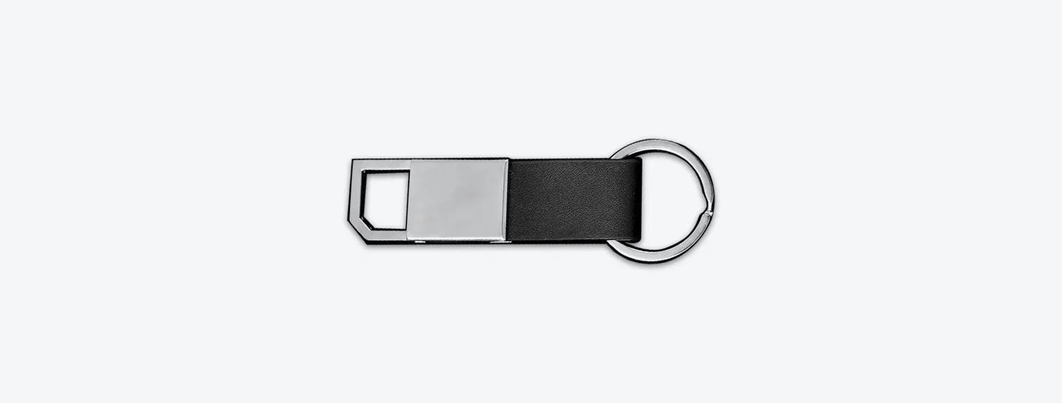 O design minimalista é aprimorado por um detalhe distintivo, adicionando um toque de sofisticação ao conjunto. Com uma quantidade mínima de 50 unidades, este chaveiro é perfeito para eventos corporativos, brindes promocionais ou para quem busca um acessório discreto e versátil.