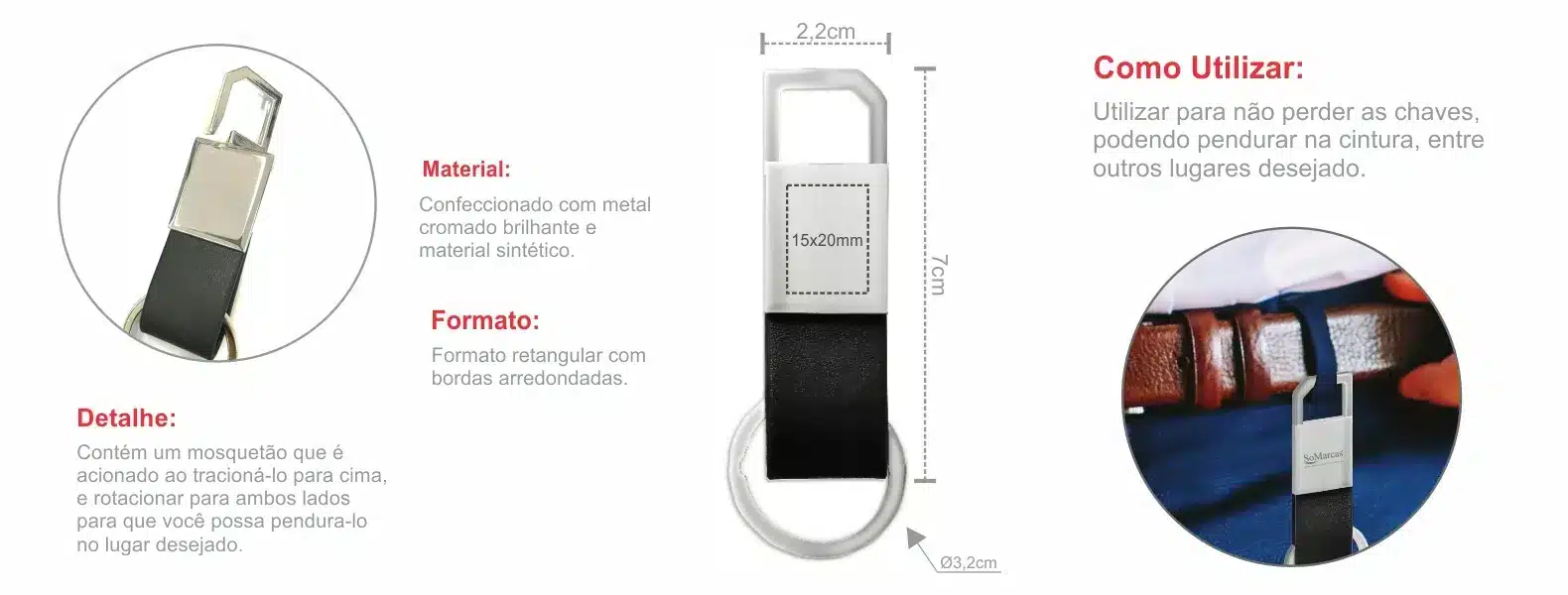 A combinação de metal e material sintético não só garante durabilidade, mas também confere uma estética moderna. Ideal para presentear ou para uso pessoal, este chaveiro atende às demandas do seu ecommerce com estilo e praticidade.