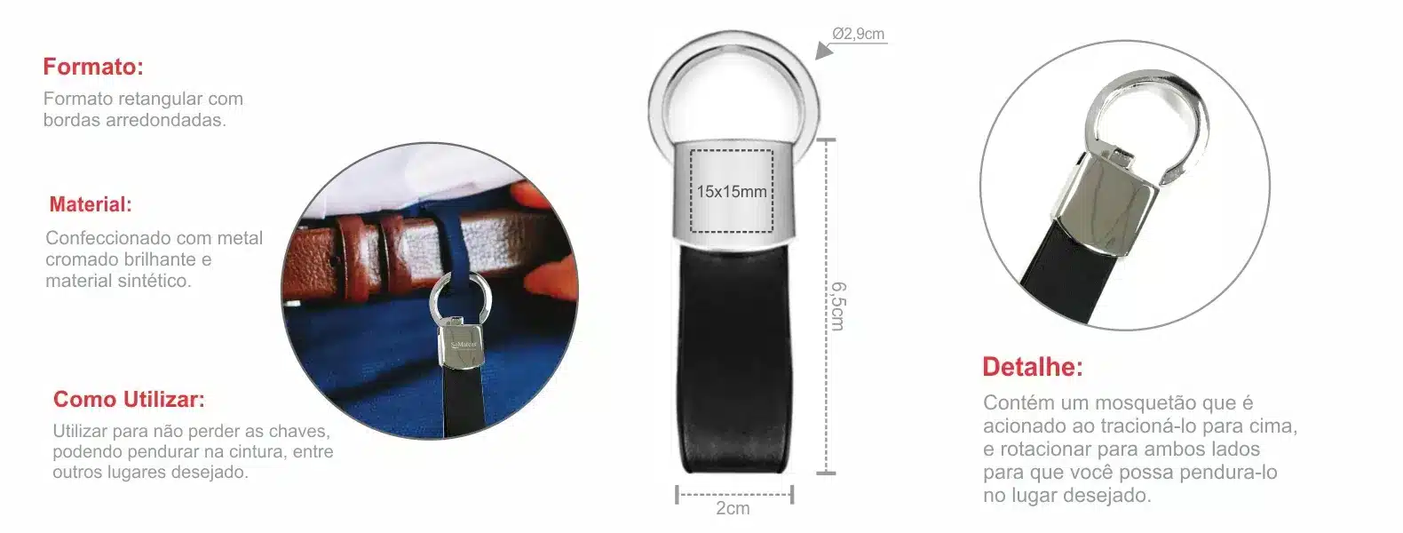 Ideal para uso pessoal, eventos corporativos ou brindes promocionais, este chaveiro atende às demandas do seu ecommerce com um toque de praticidade. Acrescente um toque de sofisticação às suas chaves com o Chaveiro em Metal e Material Sintético Preto. Garanta já o seu e experimente a elegância na simplicidade.