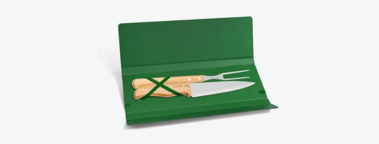 • Elásticos internos para manter a faca e o garfo firmemente no lugar.