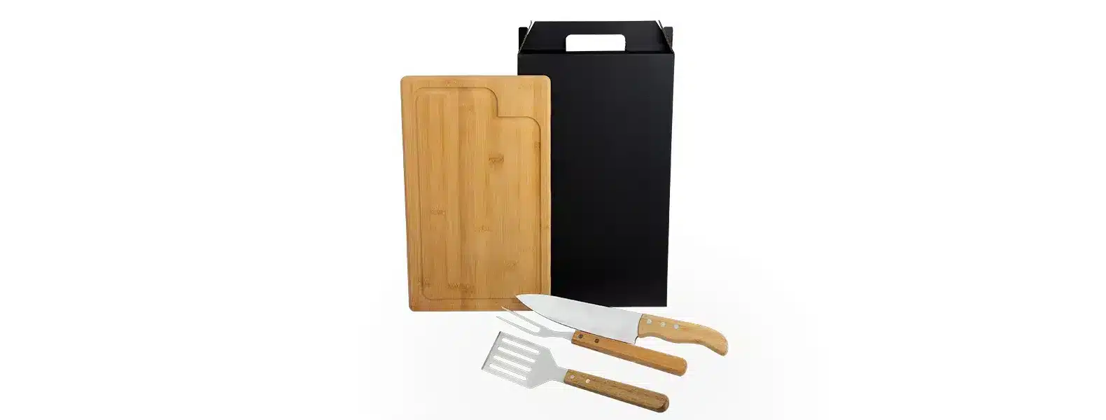 Eleve suas sessões de churrasco e preparo de hambúrguer com o sofisticado Conjunto para Churrasco/Hambúrguer, um kit completo com tábua em bambu, faca, garfo e espátula perfurada. Este conjunto de 4 peças é a escolha ideal para entusiastas da culinária que buscam funcionalidade e estilo.