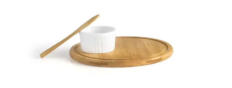 - Materiais: Tábua e espátula em bambu; ramekin em porcelana.