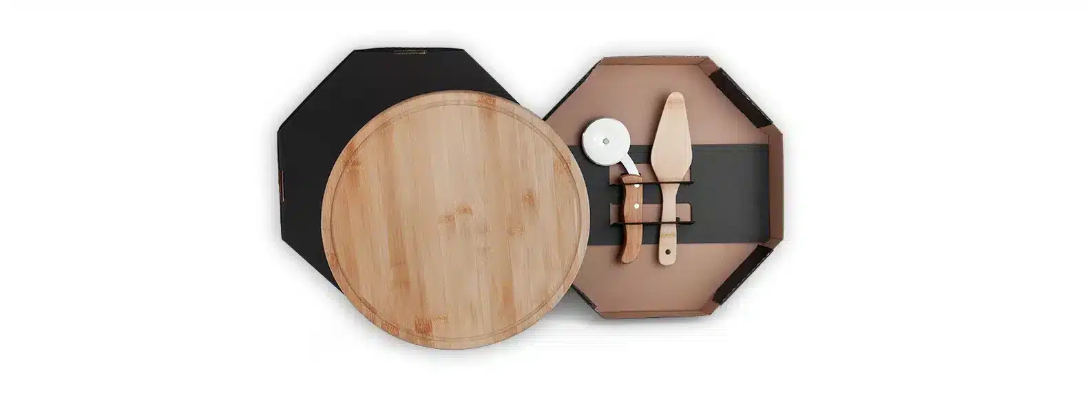 - Cortador de Pizza em Bambu/Inox: Oferece um corte preciso, combinando a resistência do aço inoxidável com a beleza do bambu.