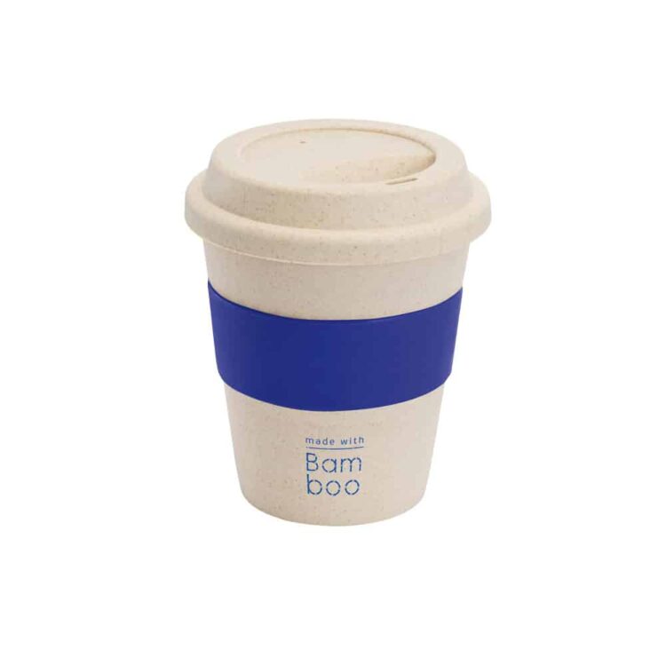 Copo de viagem. Fibra de bambu e PP. Com banda em silicone. Capacidade: 380 ml. Food grade.
