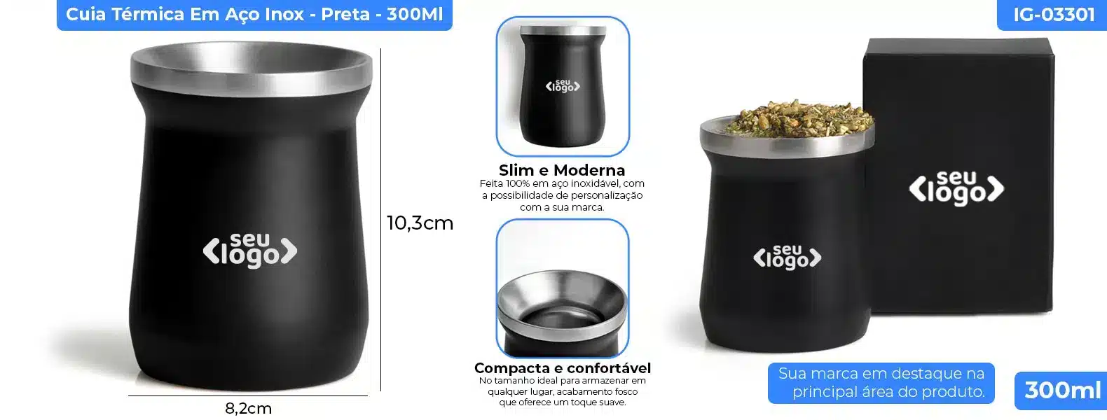 A Cuia Térmica em Aço Inox – Preto – 300ml é mais do que um simples recipiente; é um símbolo de tradição, qualidade e bom gosto. Seja para momentos de descontração, reuniões com amigos ou simplesmente para apreciar um bom chimarrão em casa, esta cuia é a escolha perfeita. Garanta a sua e tenha sempre à mão uma cuia que alia design, funcionalidade e tradição.