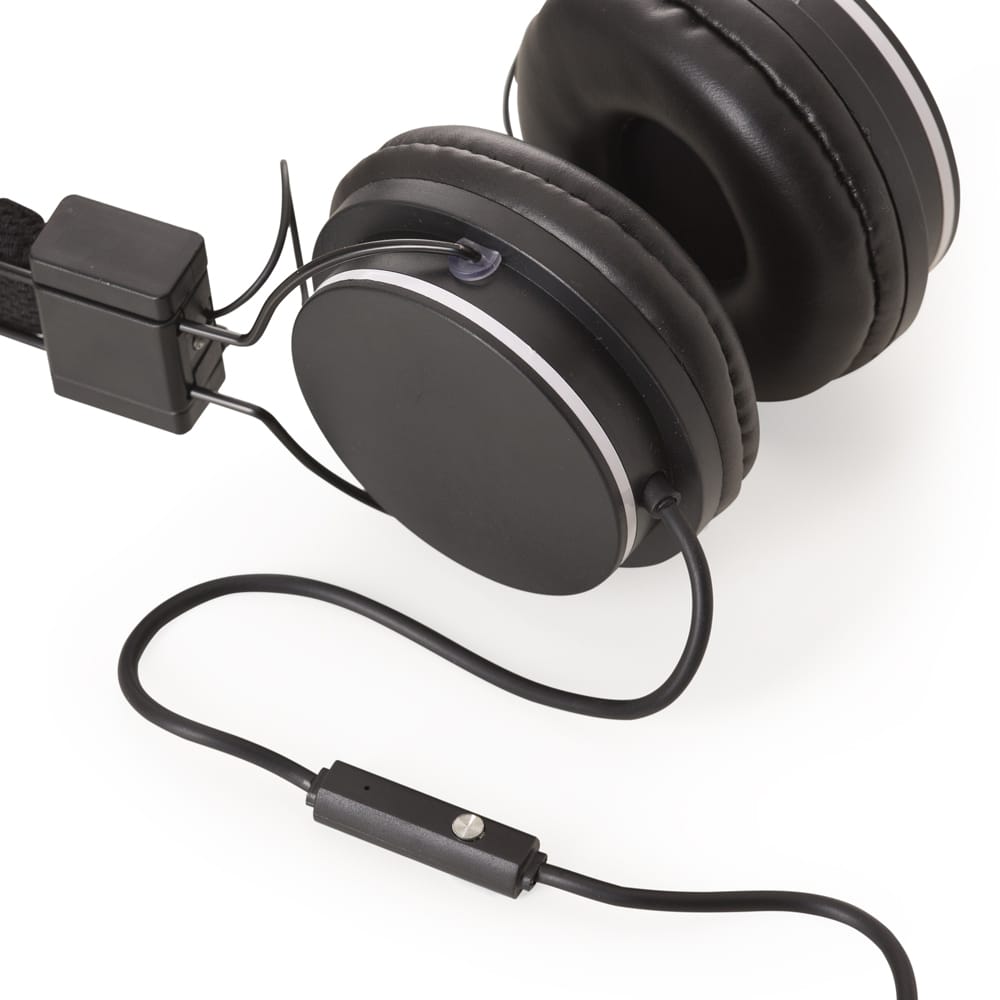 Fone de ouvido estéreo com microfone, material em plástico resistente com haste revestida de espuma e alças ajustáveis com fone giratório. Microfone acoplado em suporte no cabo, botão para play/pause e no modo ligação serve para atender chamadas. Entrada P2,