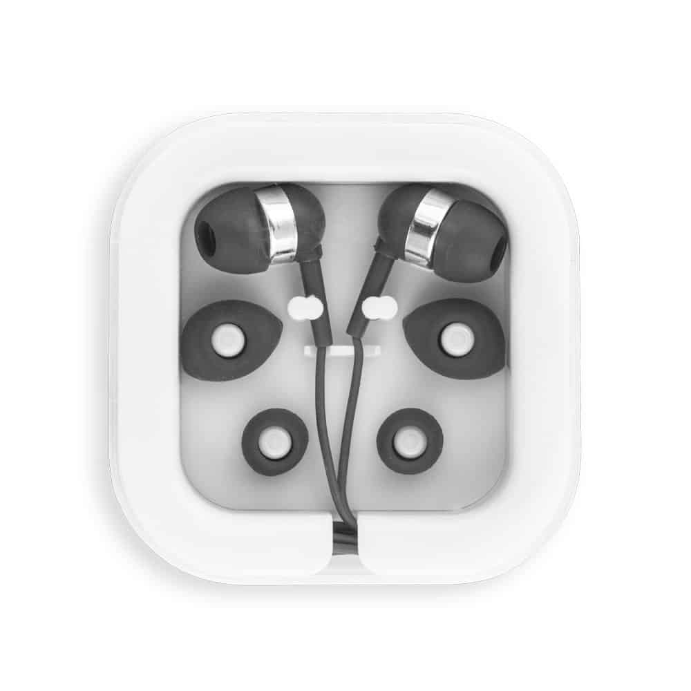 Fone de ouvido com microfone incorporado e cabo de 1,20 m com ligação stereo 3,5 mm. Inclui 2 pares extra de adaptadores de fone em silicone (dois tamanhos diferentes). Fornecidos em caixa de PS e ABS.