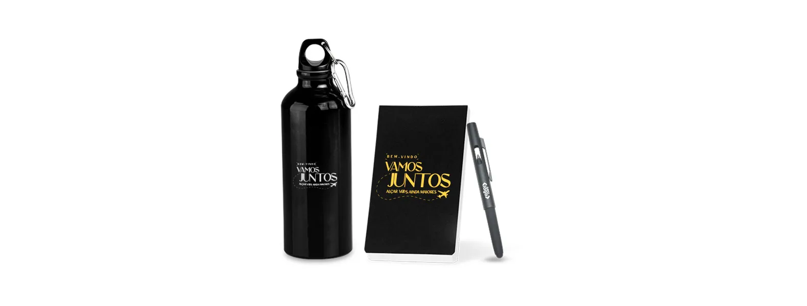 Kit com Squeeze, Caneta e Bloco – 3 Peças