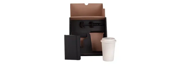 O copo oferece a praticidade de se manter hidratado durante o dia, a caneta proporciona uma escrita suave, e a caderneta é ideal para anotações rápidas.