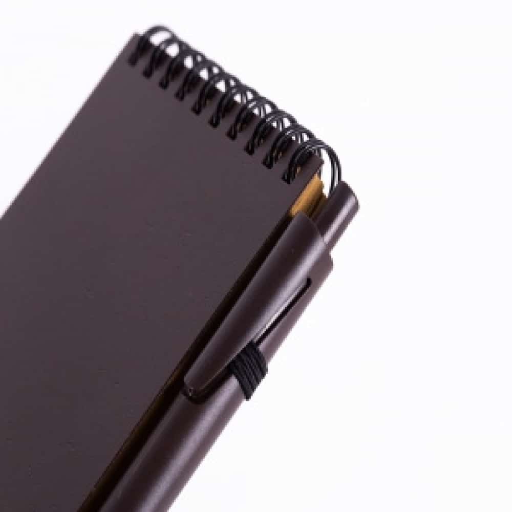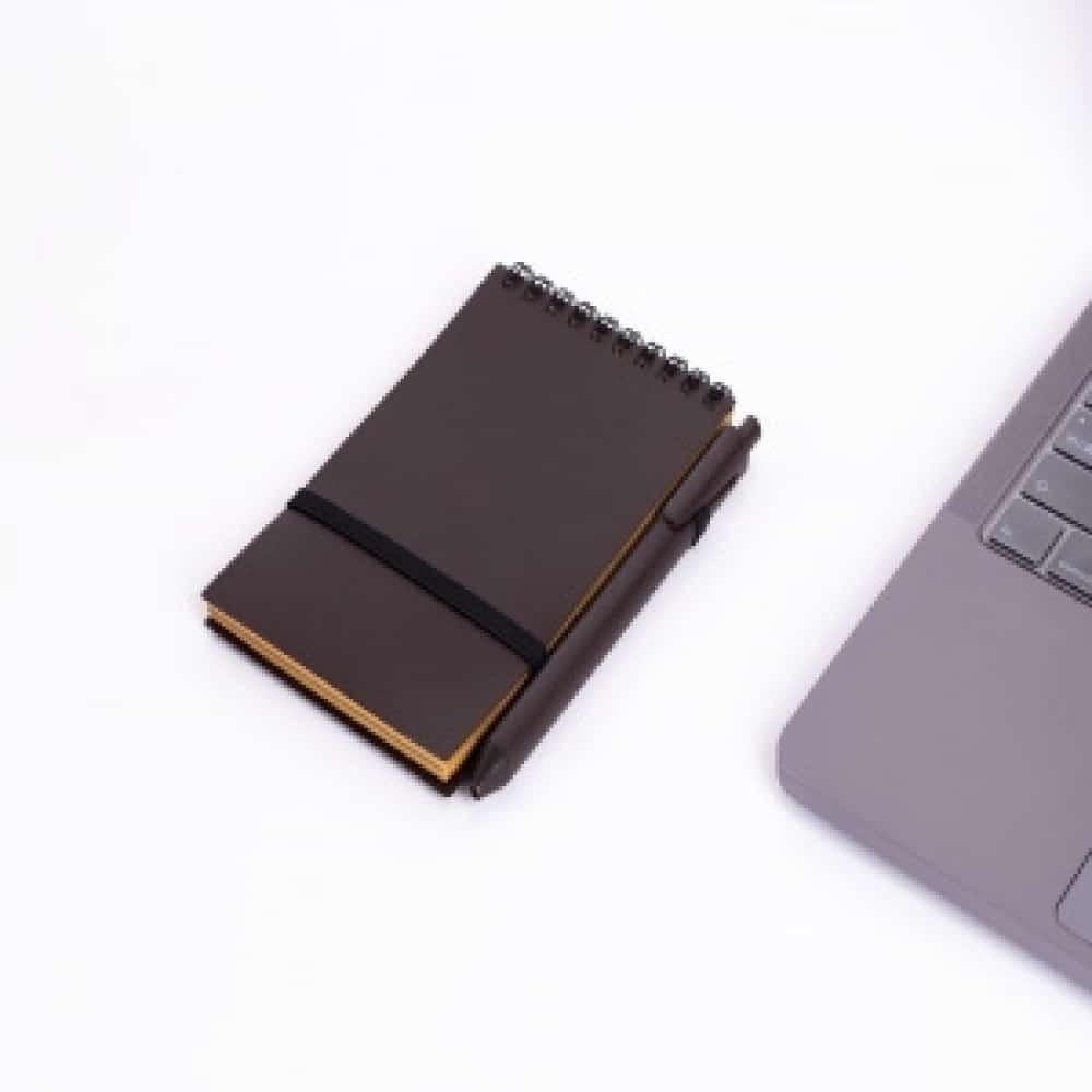 Kit escritório, contendo: Bloco de anotações 14 x 9cm, capa em PP (polipropileno) e café com wire-o Suporte para canetas Miolo 70 folhas bege Caneta material plástico e café PRODUTOS COM AROMA DE CAFÉ.