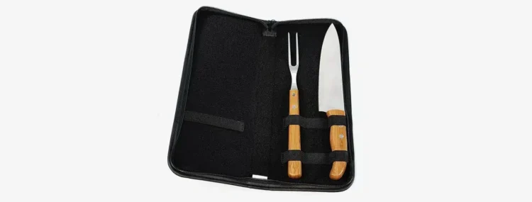Kit Garfo e Faca Inox/Bambu com Estojo Frankfurt – 3 Peças