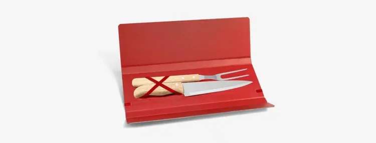 Kit Garfo e Faca Inox/Madeira com Estojo Vermelho – 3 Peças