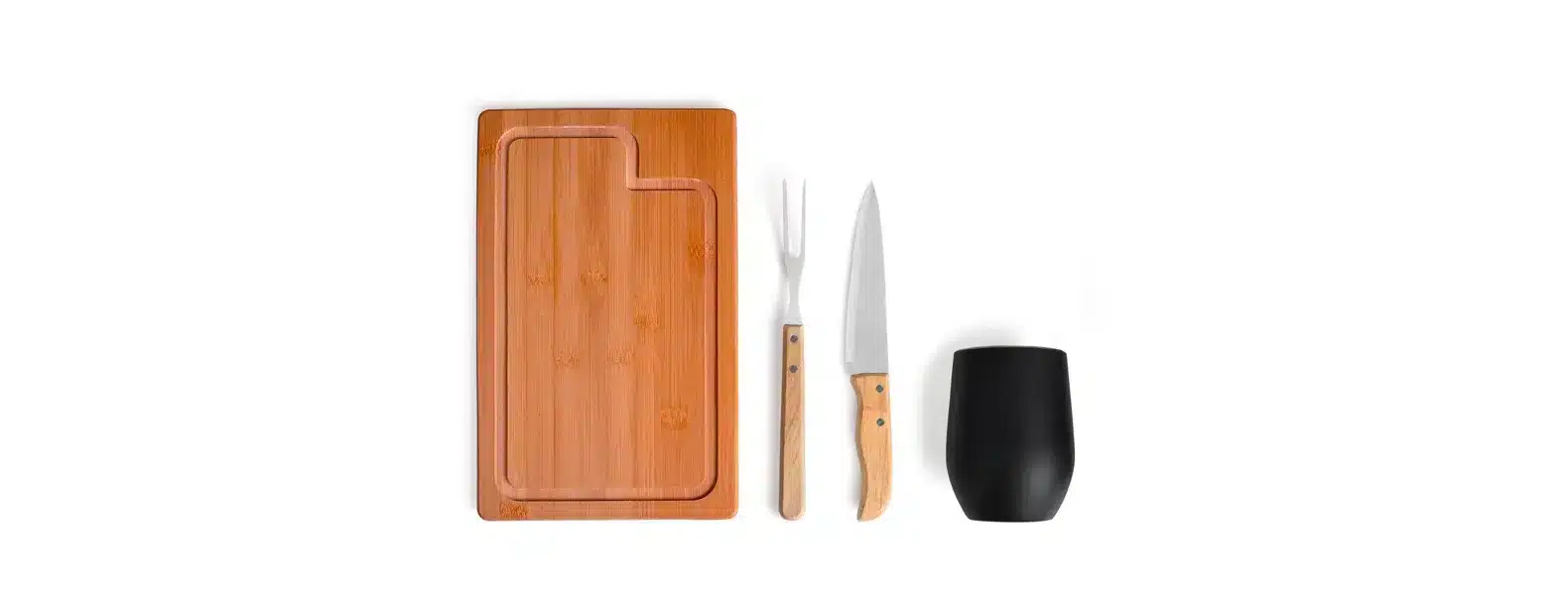 Este kit é perfeito para confraternizações, eventos corporativos ou como um presente diferenciado. A tábua em bambu oferece praticidade no preparo dos alimentos, enquanto a faca, o garfo e o copo térmico complementam a experiência do churrasco.