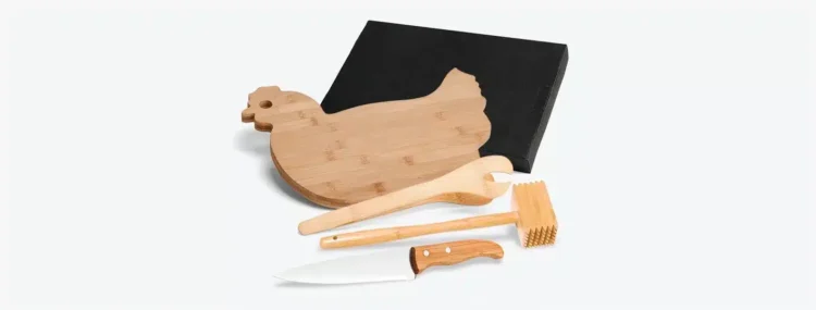 Quantidade Mínima: 15 conjuntos. Adquira agora o seu Kit para Cozinha em Bambu com Tábua Formato Galinha e descubra como a elegância pode se unir à eficiência em sua cozinha. Faça seu pedido hoje e transforme a arte de cozinhar!