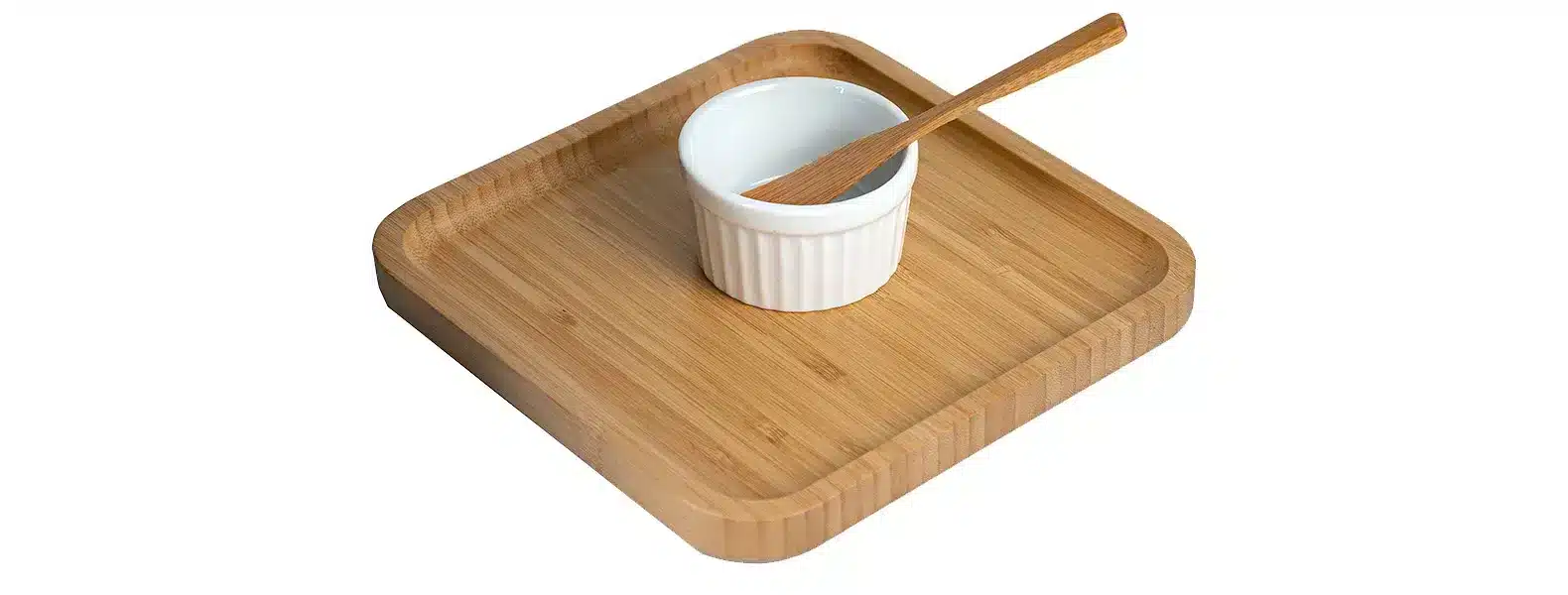 - Espátula em bambu para um manuseio suave e estiloso dos petiscos.