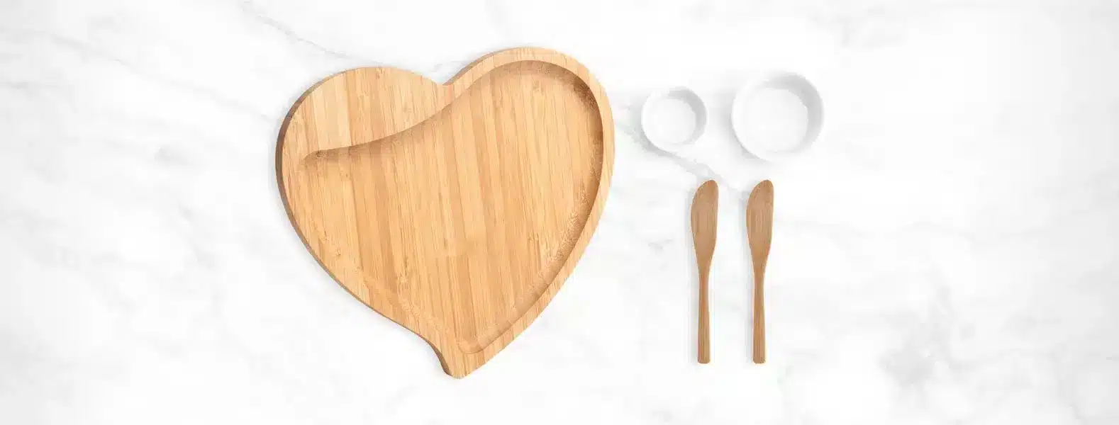Kit Para Petisco com Tábua Formato Coração – 5 Peças