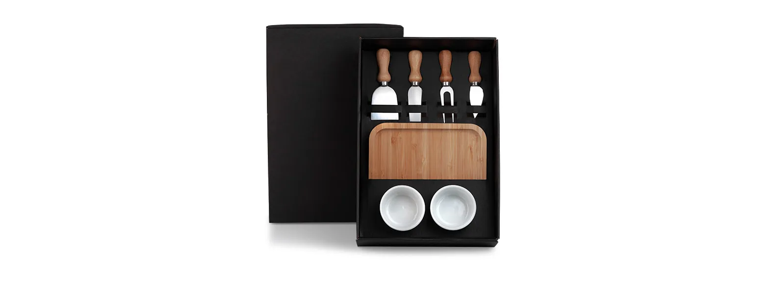 - Itens no Kit: Petisqueira, Conjunto para Queijo (2 facas, espátula, garfo), 2 Ramekins