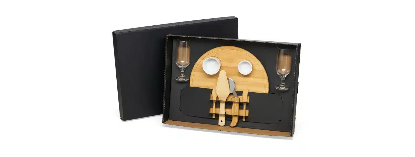Uma gravação a Laser nas duas taças e na tábua. Tábua: 35×1,2cm