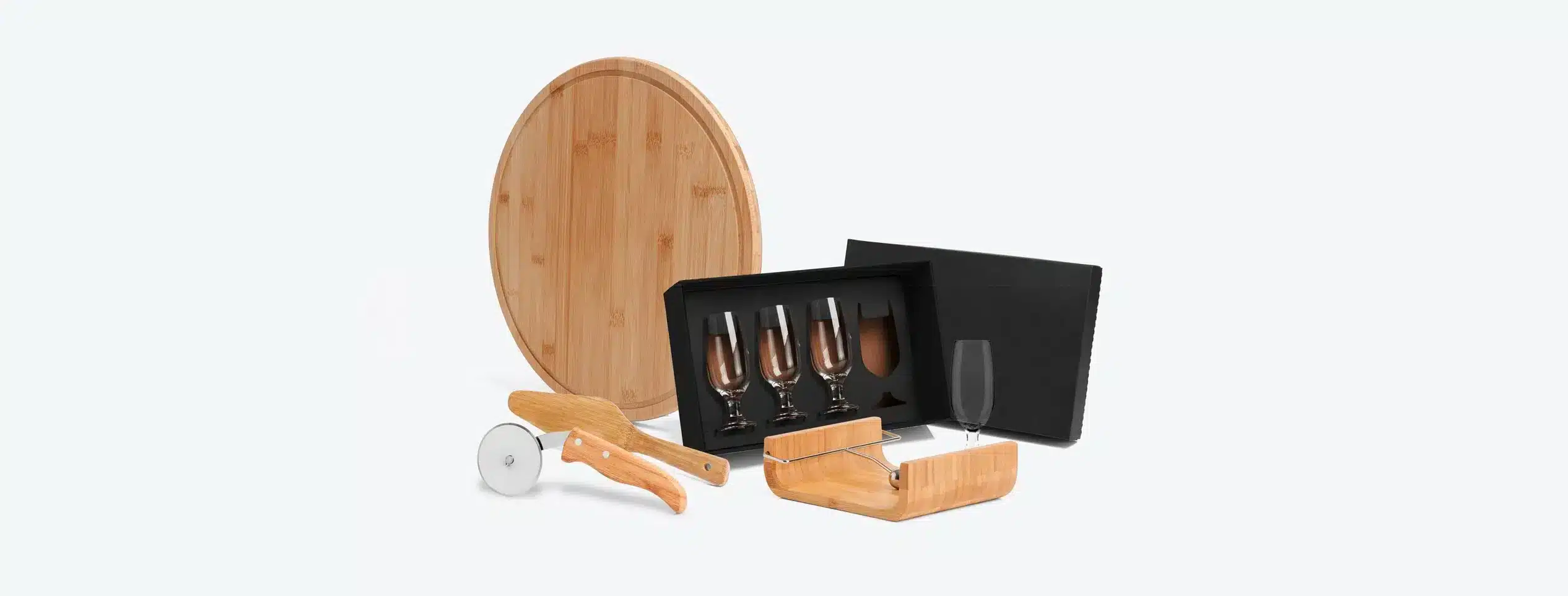 Eleve suas noites de pizza com o Kit para Pizza em Bambu. Adquira o seu agora e transforme suas refeições em momentos especiais! Quantidade Mínima: 10