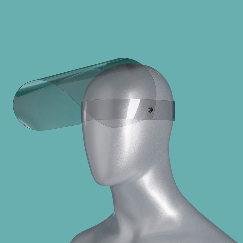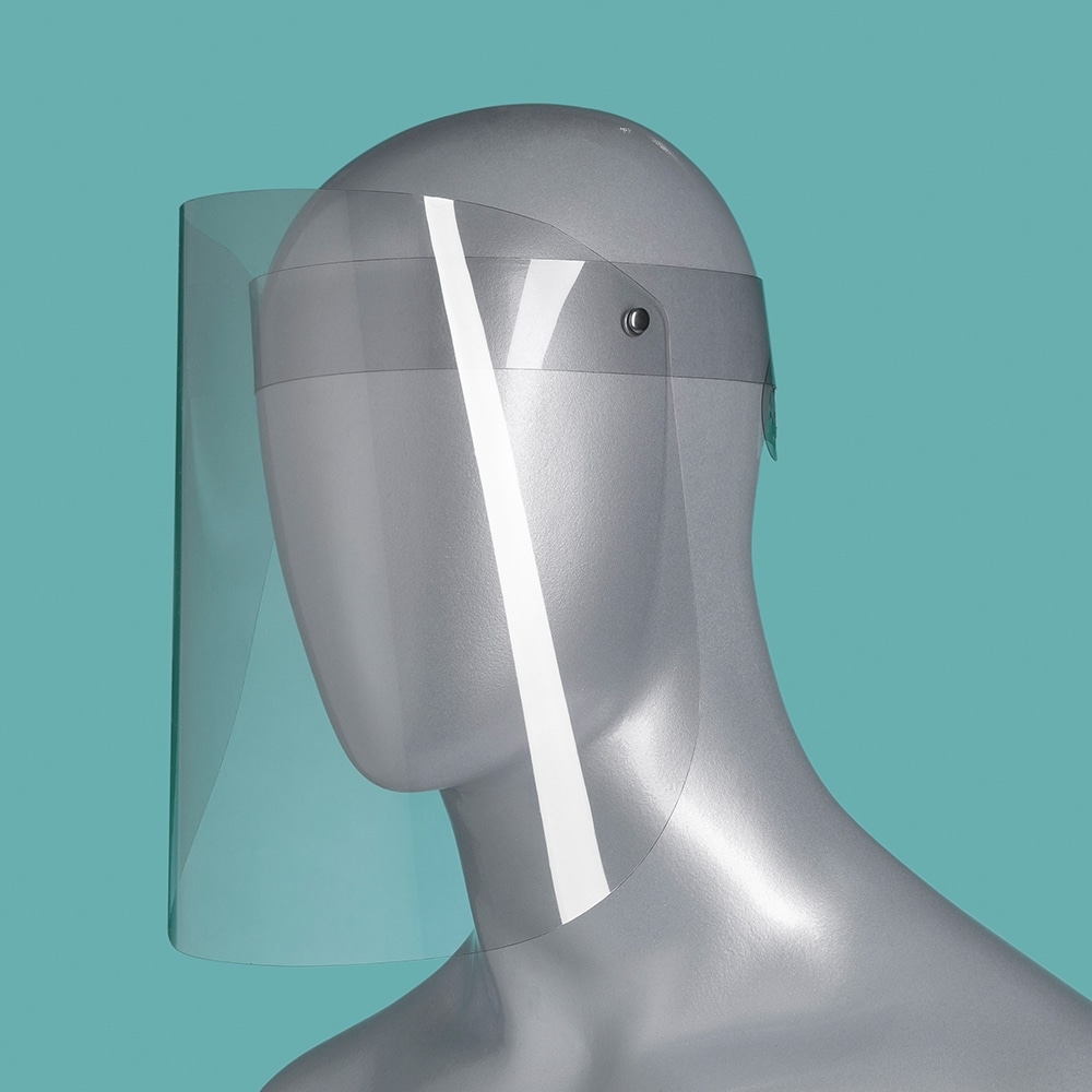 Máscara PET de proteção facial, sua utilização evita o contato com gotículas, salivas e fluídos nasais que possam atingir a face. A testeira possui nove níveis de ajuste e visor inclinável, tornando o produto articulado. Protetor lavável, 100% PET.