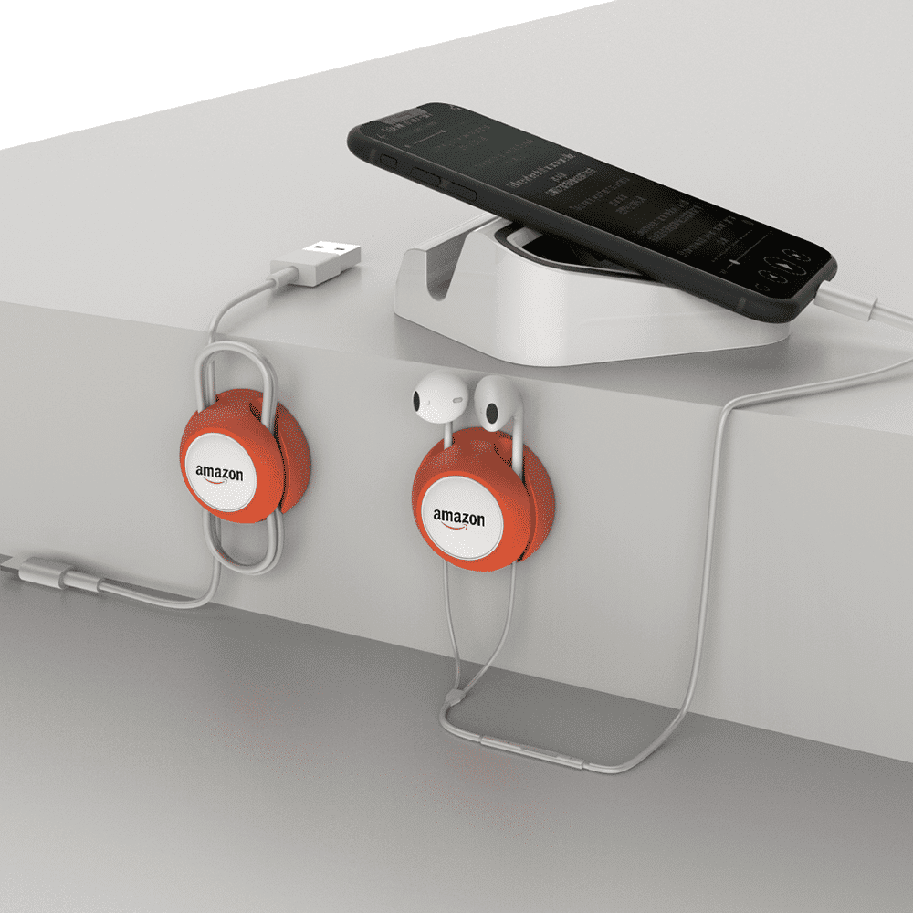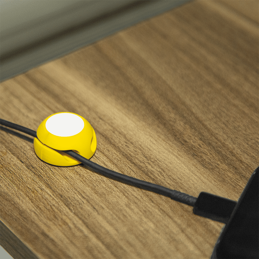 Organizador de cabos emborrachado, fixação com adesivo.