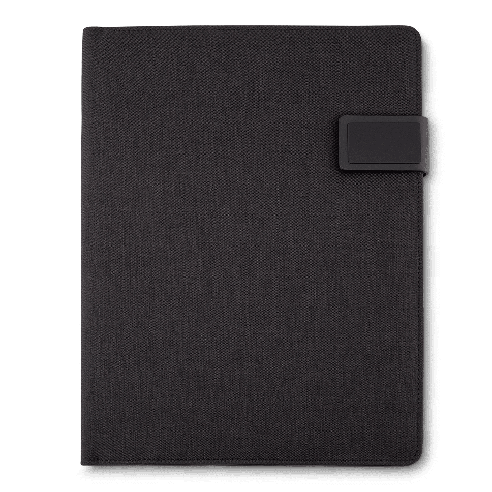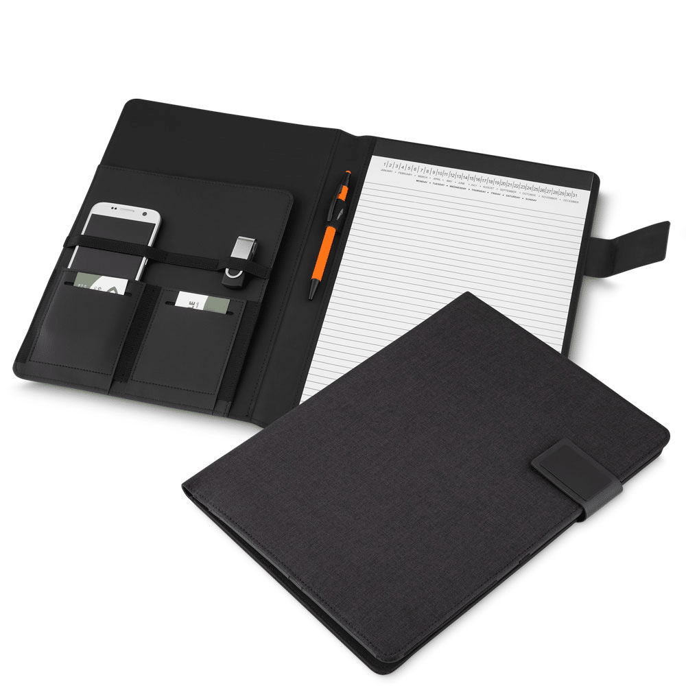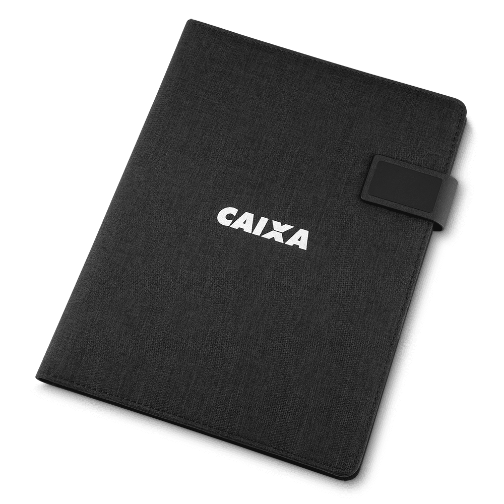 Pasta executiva com bloco de anotações, suporte para celular, caneta, porta cartões, capa com material sintético, 64 folhas. Nas compras a partir de 10 peças, seguirá como cortesia lapiseiras de sua escolha para compor os kits.