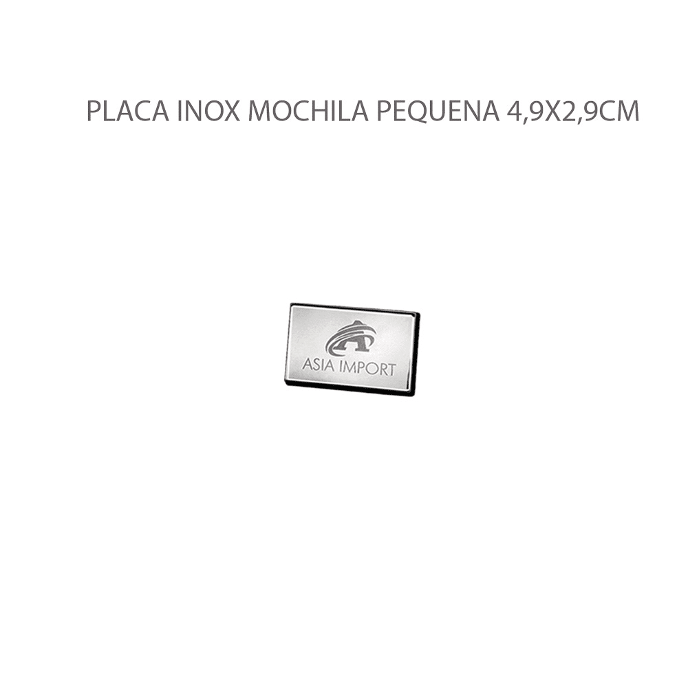 Placa em inox para fixação em mochilas e malas, ideal para gravação a laser. Possui travas para fixação.
