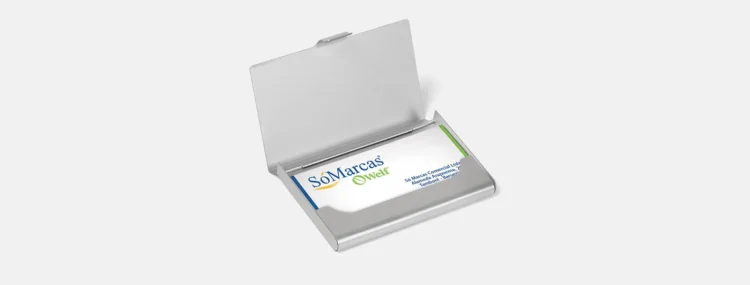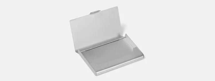 O Porta-cartão em Alumínio Fosco é uma opção elegante e prática para profissionais que buscam organizar e proteger seus cartões de visita. Confeccionado em alumínio cromado fosco, ele oferece durabilidade e um toque contemporâneo ao design. Com sua tampa equipada com fecho prático e um formato projetado para caber no bolso, este porta-cartão combina funcionalidade e estilo.