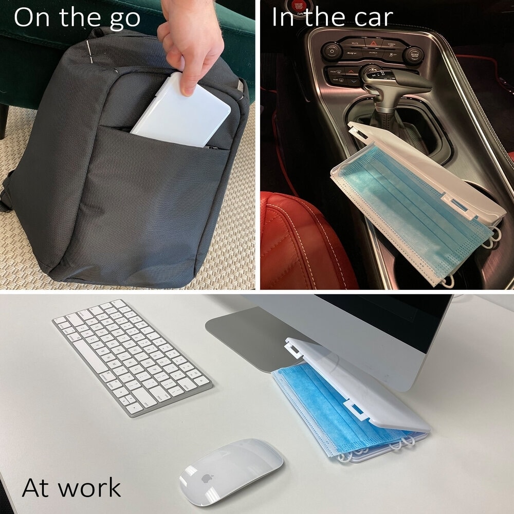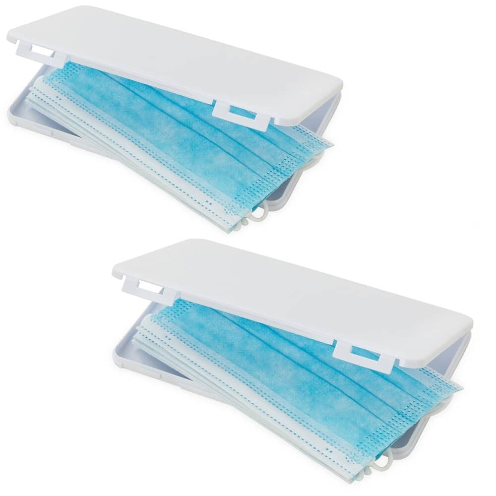 Porta-Máscaras em Plástico BPA FREE. Capacidade para 5 máscaras. Cor: Branco. Medidas: 19 x 11 x 1 Peso: 0,56gramas