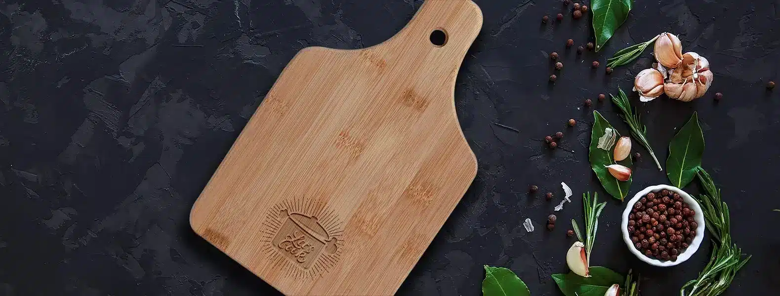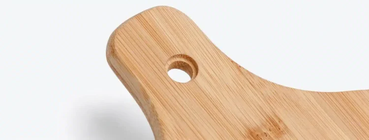 1. Material Sustentável: Fabricada em bambu, uma matéria-prima ecologicamente correta e renovável, esta tábua reflete o compromisso com a sustentabilidade ambiental.